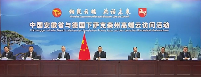 7月16日,安徽省与德国下萨克森州以视频方式举行“相聚云端 共话未来—中国安徽省与德国下萨克森州高端云访问活动”。省委书记李锦斌、省长王清宪、下萨克森州州长施特凡·魏尔、副省长章曦、中国驻汉堡总领事杜晓晖、德国驻上海代总领事唐孟思和合肥学院校长吴春梅等出席活动。