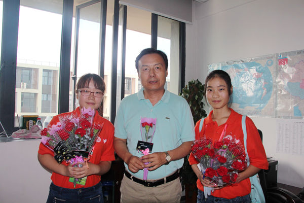 早晨,当老师们走下校车,迎接他们的是一张张甜美的笑脸和热情的祝福,校学生会的同学们为老师们递上承载着感恩和祝福的一支支康乃馨,表达了对老师满满的节日祝福和辛勤劳作的感激之情。同学们还分别来到各部门办公室和各系的迎新现场,为节日里正奋战在辛勤工作一线的老师们送上鲜花和祝福,一张张卡片写满对老师的爱戴和敬意,一朵朵鲜花寄予了对老师的感谢和慰问。收到节日祝福的老师们洋溢着会心的笑容,并与同学们一起合影留念。