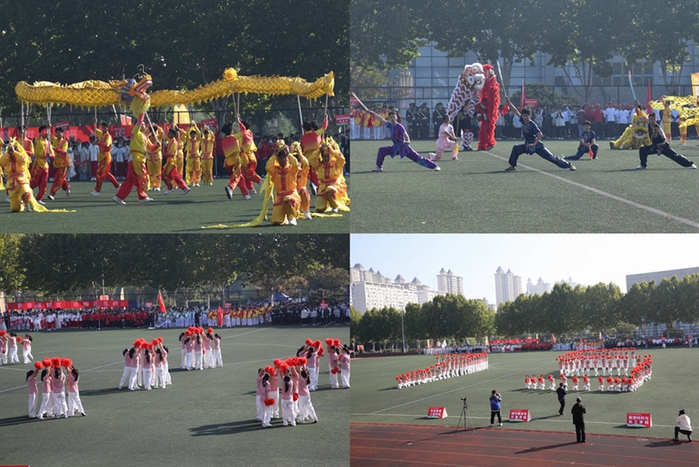 校领导亲自为舞龙舞狮点睛后,各体艺俱乐部为全场师生带来了精彩绝伦的文艺表演,观众席掌声鸣动。从《龙狮、武术——武彩飞扬》的雄浑激昂到《啦啦操——歌唱祖国》的青春朝气,再到《大众操——活力悦动》的热情四溢,直至《FD舞蹈——象王行》的大气磅礴,每一幕都展现了学子们的多才多艺与青春风采,为运动会注入了无限激情与活力。