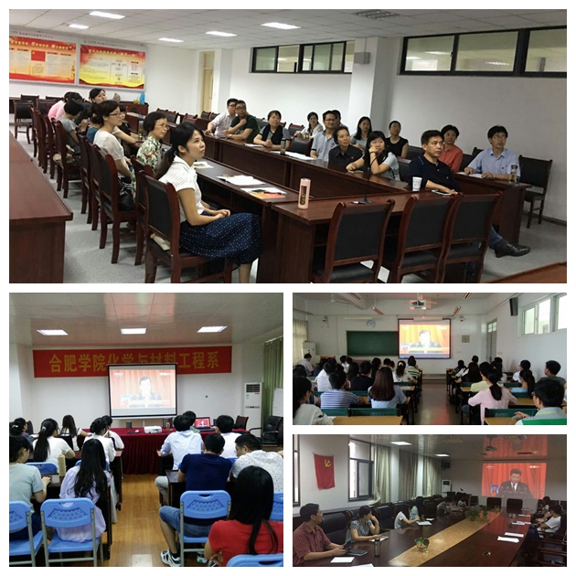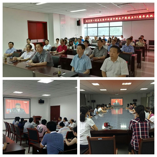7月1日上午,庆祝中国共产党成立95周年大会在人民大会堂举行。合肥学院各党总支、直属党支部认真组织本单位全体党员同志集体收听收看。在行政楼一楼会议室,党委书记蔡敬民、纪委书记洪家友、副院长刘建中、督导员郑永红同机关第一党总支的党员同志们一起集中收看中国共产党成立95周年庆祝大会的直播,认真学习了中共中央总书记、国家主席、中央军委主席习近平发表的重要讲话。