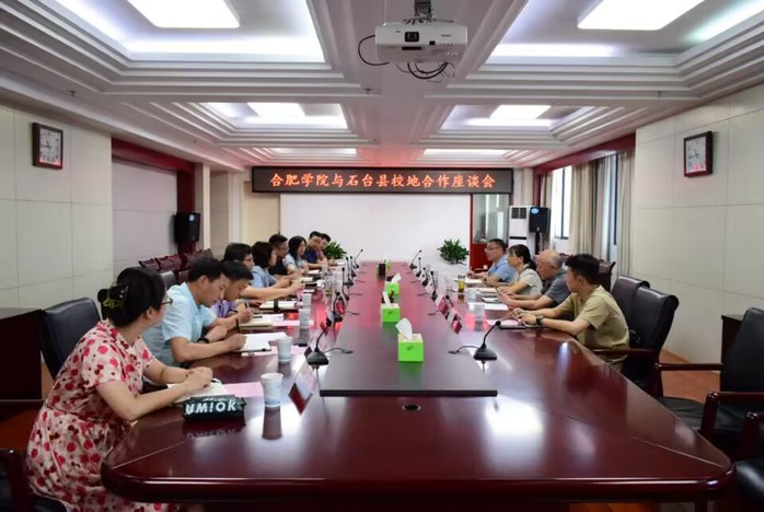 6月21日上午,石台县委常委、统战部部长、县政协党组副书记王萍一行来访我校,我校在行政楼九楼东会议室召开校地合作座谈会,院长吴春梅出席会议,相关部门负责人参加会议。会议由党委委员、党委宣传统战部部长贾峰主持。