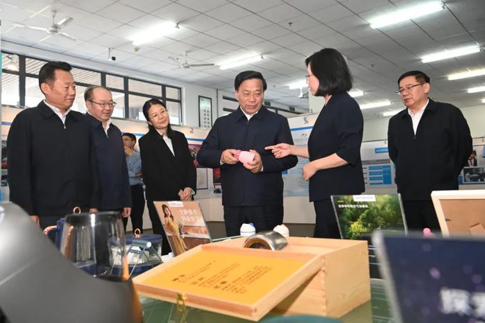合肥学院是一所应用型高等院校,综合实力位居省内学院类高校前列。韩俊走进学校办学成果展厅,听取学院发展情况汇报,鼓励学院坚持“地方性、应用型、国际化”办学定位,持续深化教育教学改革,扎实推进学科专业、教学资源平台等建设,努力培养更多高素质应用型人才。安徽省绿色涂料高性能助剂工程研究中心,是合肥学院创建的高水平科研创新平台。韩俊来到中心,深入了解科技创新、成果转化等情况,对“企业出题、项目驱动、真题真做、市场检验”模式给予肯定。他说,要支持高校联合科研院所、产业链上下游企业组建新型研发机构,推进科技成果转化的要素精准匹配和深度对接,开展有组织和订单式科研创新活动,不断提高科技成果转化和产业化水平。