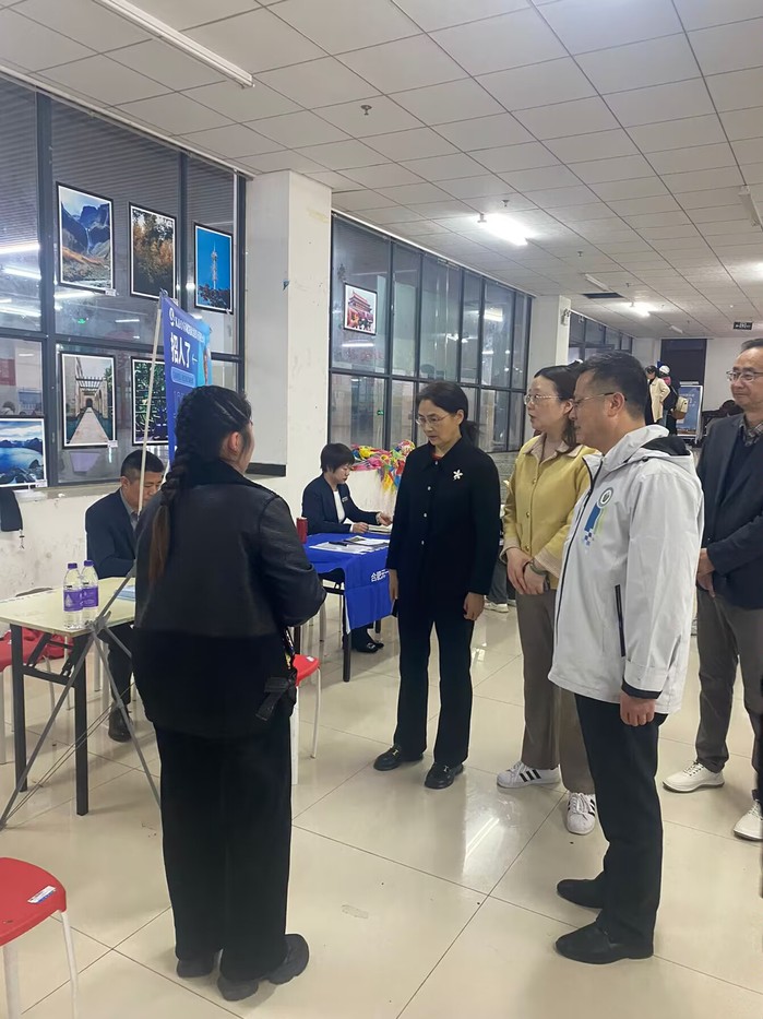 为加强校友联络,搭建就业沟通平台,助推毕业生高质量就业,3月29日下午,学校在图书馆一楼就业招聘大厅举办2024年春季校友企业专场招聘会。副校长陈秀在校友办公室、学生处等相关单位负责人的陪同下到招聘现场了解校友企业招聘情况,并与校友企业面对面交流。