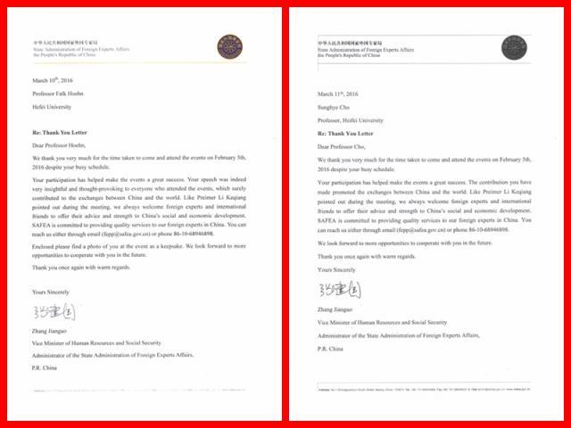 近日,国家人力资源和社会保障部副部长、国家外国专家局局长张建国致信我校两位外国专家,对其于今年2月5日在京出席与李克强总理的新春座谈会等事宜表示感谢。